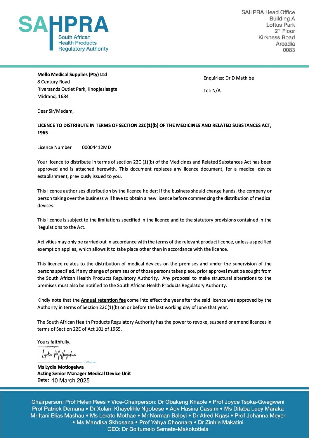The South African Health Products Regulatory Authority is the organisation in charge of regulating the use of all Health Products throughout the country. It is part of the National Department of Health.